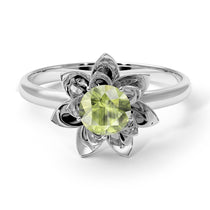 The Lotus Flower Solitaire Peridot ring is a breathtaking piece of jewelry designed to evoke the beauty and purity of a lotus flower. Crafted in radiant white gold, this handmade ring features a delicate floral motif and intricately shaped petals, cradling a brilliant 0.5-carat round peridot at its center. The peridot's sparkle and the ring's elegant design make it a perfect choice for an engagement, an anniversary, or a meaningful gift. This unique and sophisticated ring combines timeless craftsmanship with nature-inspired beauty.
