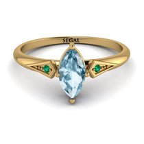 Mix up your style with a bit of orderly appeal with this fascinating Marquise Aquamarine Geometric Engagement Ring. This Marquise Aquamarine Geometric Engagement Ring is a circular band with a marquise center Aquamarine and two round stons on its sides. These stones are in lovely geometric seats. With this Marquise Aquamarine Geometric Engagement Ring, you get a ring with both luxury and style meshed within it.