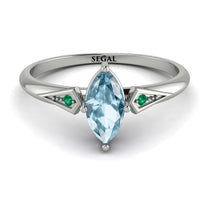 Mix up your style with a bit of orderly appeal with this fascinating Marquise Aquamarine Geometric Engagement Ring. This Marquise Aquamarine Geometric Engagement Ring is a circular band with a marquise center Aquamarine and two round stons on its sides. These stones are in lovely geometric seats. With this Marquise Aquamarine Geometric Engagement Ring, you get a ring with both luxury and style meshed within it.