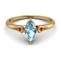 Mix up your style with a bit of orderly appeal with this fascinating Marquise Aquamarine Geometric Engagement Ring. This Marquise Aquamarine Geometric Engagement Ring is a circular band with a marquise center Aquamarine and two round stons on its sides. These stones are in lovely geometric seats. With this Marquise Aquamarine Geometric Engagement Ring, you get a ring with both luxury and style meshed within it.