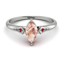Mix up your style with a bit of orderly appeal with this fascinating Marquise Morganite Geometric Engagement Ring. This Marquise Morganite Geometric Engagement Ring is a circular band with a marquise center Morganite and two round stons on its sides. These stones are in lovely geometric seats. With this Marquise Morganite Geometric Engagement Ring, you get a ring with both luxury and style meshed within it.