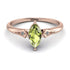 Mix up your style with a bit of orderly appeal with this fascinating Marquise Peridot Geometric Engagement Ring. This Marquise Peridot Geometric Engagement Ring is a circular band with a marquise center Peridot and two round stons on its sides. These stones are in lovely geometric seats. With this Marquise Peridot Geometric Engagement Ring, you get a ring with both luxury and style meshed within it.