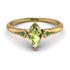 Mix up your style with a bit of orderly appeal with this fascinating Marquise Peridot Geometric Engagement Ring. This Marquise Peridot Geometric Engagement Ring is a circular band with a marquise center Peridot and two round stons on its sides. These stones are in lovely geometric seats. With this Marquise Peridot Geometric Engagement Ring, you get a ring with both luxury and style meshed within it.