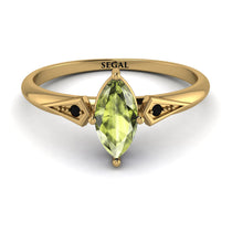Mix up your style with a bit of orderly appeal with this fascinating Marquise Peridot Geometric Engagement Ring. This Marquise Peridot Geometric Engagement Ring is a circular band with a marquise center Peridot and two round stons on its sides. These stones are in lovely geometric seats. With this Marquise Peridot Geometric Engagement Ring, you get a ring with both luxury and style meshed within it.