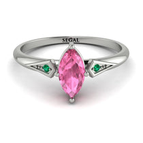 Mix up your style with a bit of orderly appeal with this fascinating Marquise Pink Moissanite Geometric Engagement Ring. This Marquise Pink Moissanite Geometric Engagement Ring is a circular band with a marquise center Pink Moissanite and two round stons on its sides. These stones are in lovely geometric seats. With this Marquise Pink Moissanite Geometric Engagement Ring, you get a ring with both luxury and style meshed within it.