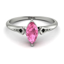 Mix up your style with a bit of orderly appeal with this fascinating Marquise Pink Moissanite Geometric Engagement Ring. This Marquise Pink Moissanite Geometric Engagement Ring is a circular band with a marquise center Pink Moissanite and two round stons on its sides. These stones are in lovely geometric seats. With this Marquise Pink Moissanite Geometric Engagement Ring, you get a ring with both luxury and style meshed within it.