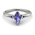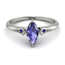 Mix up your style with a bit of orderly appeal with this fascinating Marquise Tanzanite Geometric Engagement Ring. This Marquise Tanzanite Geometric Engagement Ring is a circular band with a marquise center Tanzanite and two round stons on its sides. These stones are in lovely geometric seats. With this Marquise Tanzanite Geometric Engagement Ring, you get a ring with both luxury and style meshed within it.