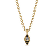 An exquisite vintage-inspired necklace! Crafted in gold,this necklace features an open art-deco pendant accented with five sparkling white diamond in the petal-shaped pendant, showcasing a vibrant round-cut diamond in the center. Complete with milgrain detailing, this pendant is adorned on a matching 18-inch chain securing with a spring-ring clasp.
