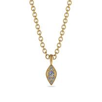 An exquisite vintage-inspired necklace! Crafted in gold,this necklace features an open art-deco pendant accented with five sparkling white diamond in the petal-shaped pendant, showcasing a vibrant round-cut diamond in the center. Complete with milgrain detailing, this pendant is adorned on a matching 18-inch chain securing with a spring-ring clasp.
