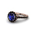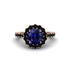 Celebrate your love with the unparalleled elegance of the Round Cut Sapphire Timeless Splendor Engagement Ring. At its heart lies a magnificent 2-carat round-cut Sapphire, exuding brilliance and fire that captivates the soul. A halo of sparkling Black Diamonds embraces this dazzling centerpiece, meticulously hand-set to amplify its radiant glow.The luxurious 14K gold band is adorned with additional Black Diamonds, each carefully selected and set to enhance the ring's overall brilliance. This handmade masterpiece is a testament to exquisite craftsmanship and timeless design, blending classic beauty with modern sophistication.The Round Cut Sapphire Timeless Splendor Engagement Ring is more than just a piece of jewelry; it is a symbol of your eternal commitment and the precious moments you share. With its breathtaking sparkle and elegant design, this ring will forever be a cherished reminder of the love and promises that bind your hearts together.
