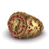Embrace the strength and wisdom of the elephant with this stunning men’s fashion ring. Crafted from radiant gold, this ring showcases a detailed elephant head at its center, symbolizing power and resilience. Encircled by 106 Rubys, each stone enhances the design’s grandeur, creating a radiant aura around the majestic centerpiece. Handcrafted with meticulous attention to detail, the intricate patterns surrounding the elephant evoke a sense of timeless elegance. This ring is more than just an accessory; it’s a tribute to strength, grace, and the enduring beauty of nature.