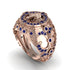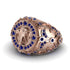 Embrace the strength and wisdom of the elephant with this stunning men’s fashion ring. Crafted from radiant gold, this ring showcases a detailed elephant head at its center, symbolizing power and resilience. Encircled by 106 Sapphires, each stone enhances the design’s grandeur, creating a radiant aura around the majestic centerpiece. Handcrafted with meticulous attention to detail, the intricate patterns surrounding the elephant evoke a sense of timeless elegance. This ring is more than just an accessory; it’s a tribute to strength, grace, and the enduring beauty of nature.