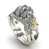 White Gold 0.84 Carat Round Cut Diamond Art Deco Nature Inspired Engagement Ring - An engagement marks the beginning. Plant the seed for your love to grow lusher with this unqiue ornate botanical ring. There are 101 good things to say about a man who gives flowers, but there are a million and one to say about a man who gifts an eternal bouquet of flowers that shines from every angle. A wreath of pointed-petal blossoms and stones surround the scintillating central stone. The design continues with a matching flower on each side and captivating band cutouts.
